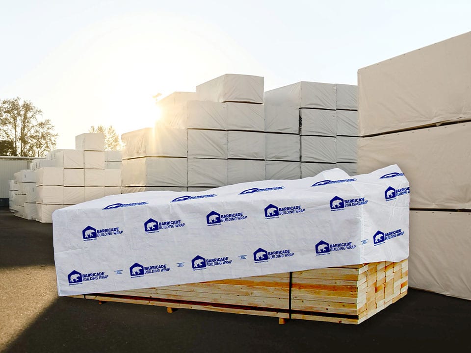 Barricade Lumber Wrap is a premium solution for safeguarding your lumber during transport and storage. Our high-quality woven polyolefin wrap provides exceptional protection against a range of environmental factors. This design offers superior tear and puncture resistance, shielding your lumber from handling damage. Additionally, the UV-resistant coating safeguards your lumber from the sun’s harmful rays, while the water-resistant properties protect against moisture damage.